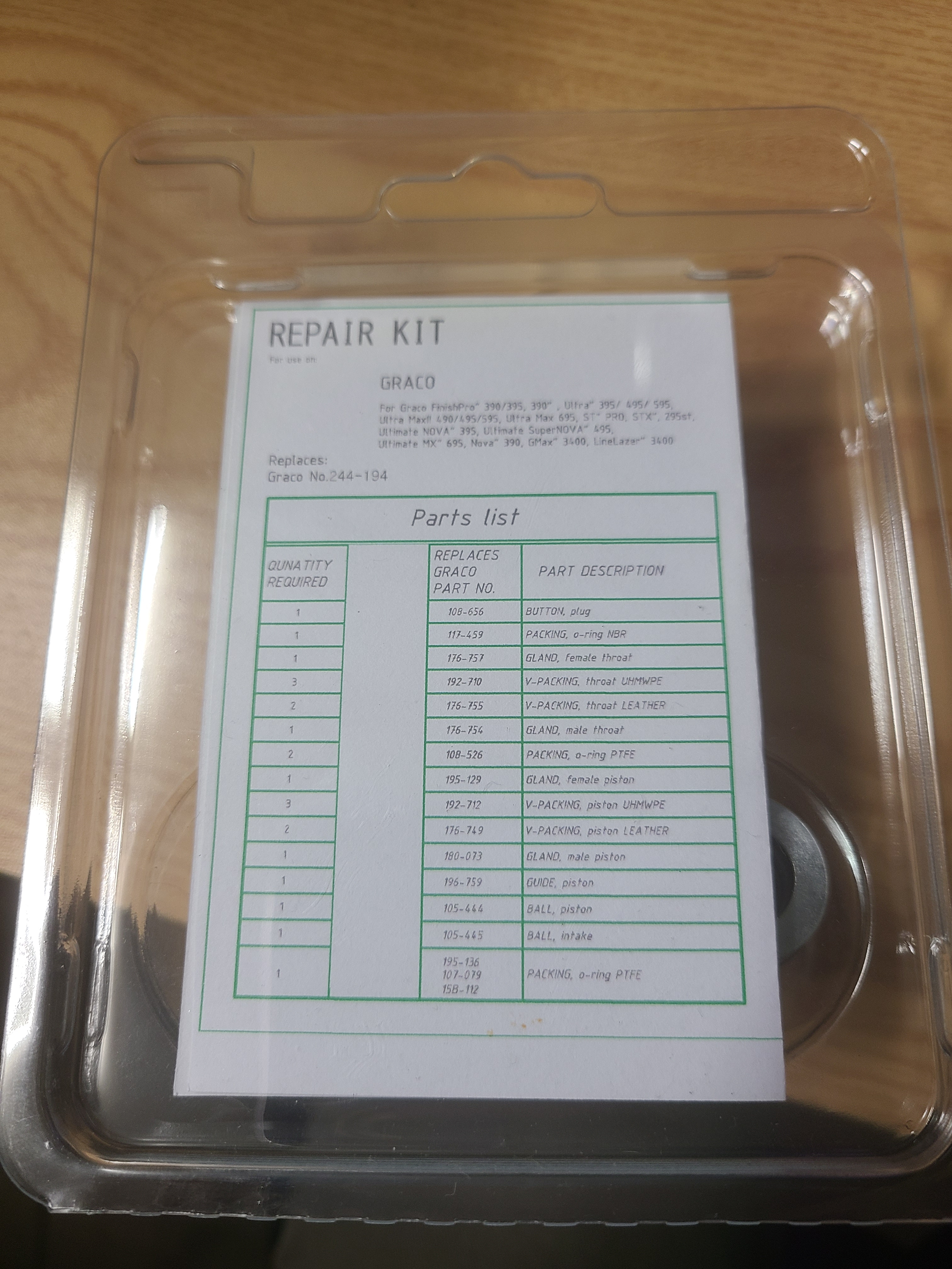 Electric pump Repair kits Details