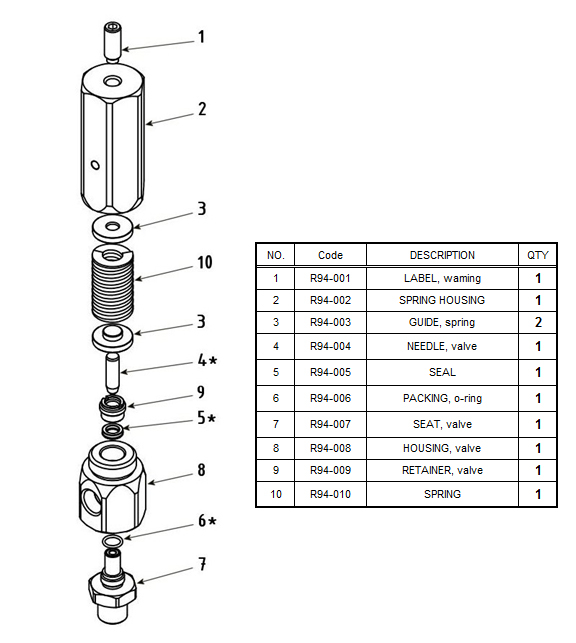 RELIEF VALVE PART LIST